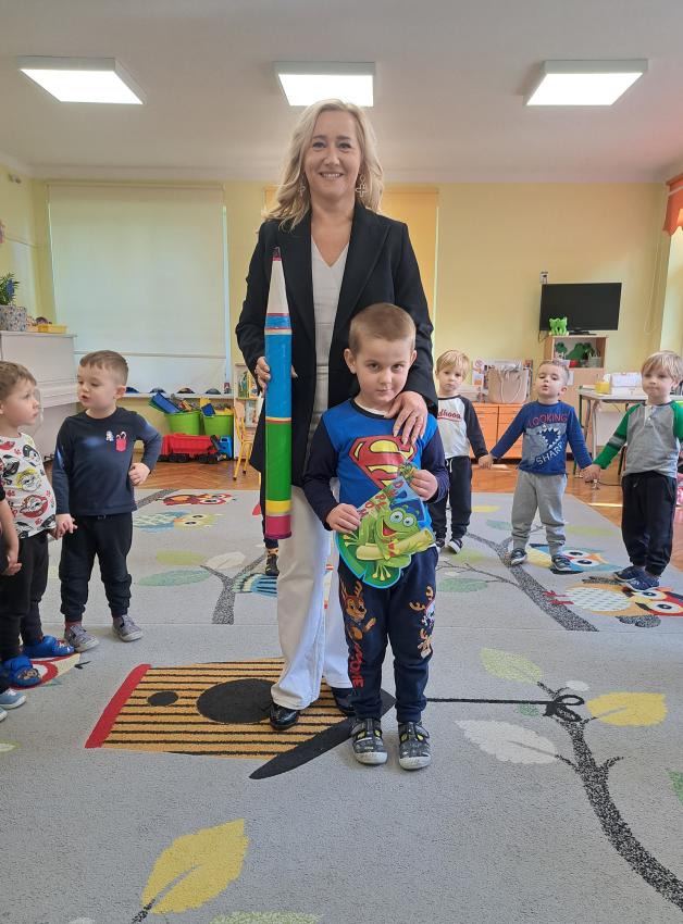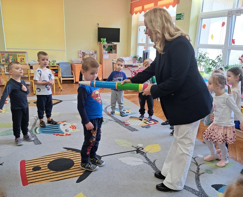 W dniu 13.11.2025 Pani Dyrektor uroczyście pasowala Tymusia na przedszkolaka.