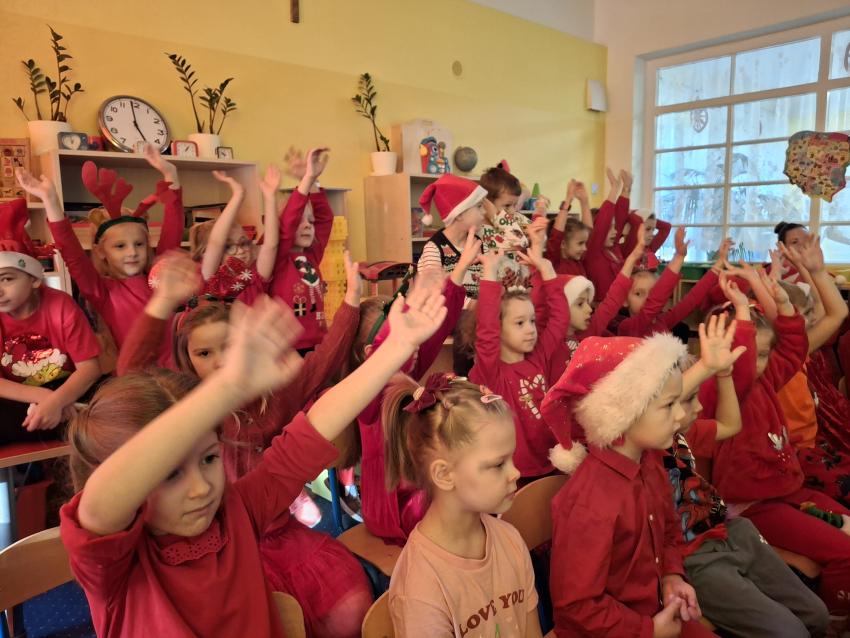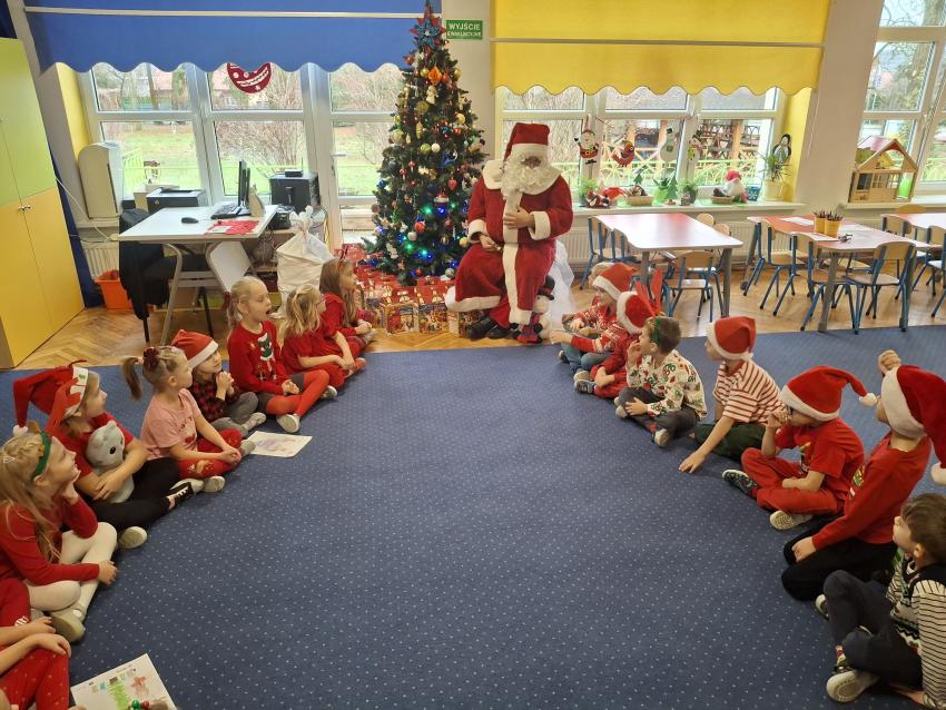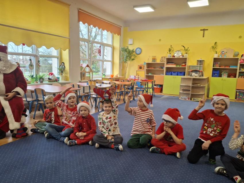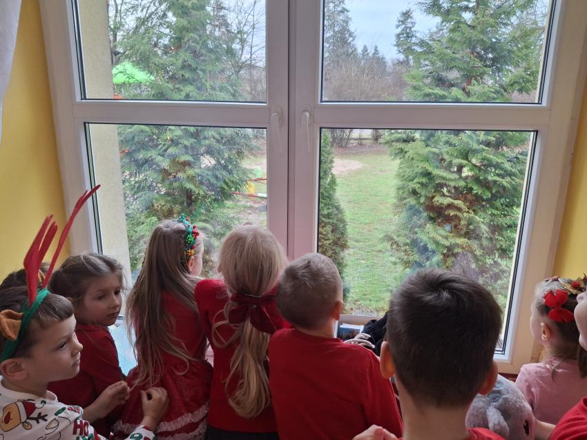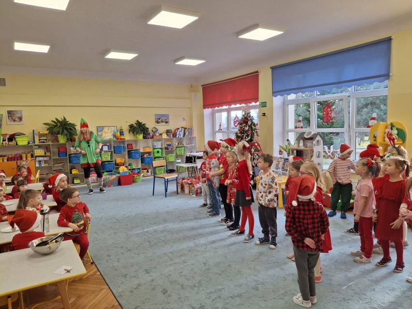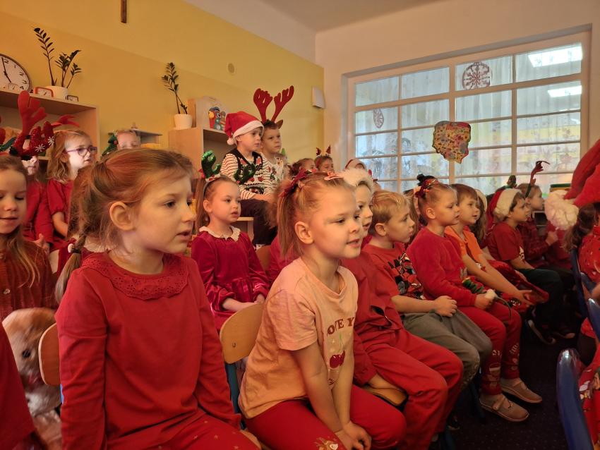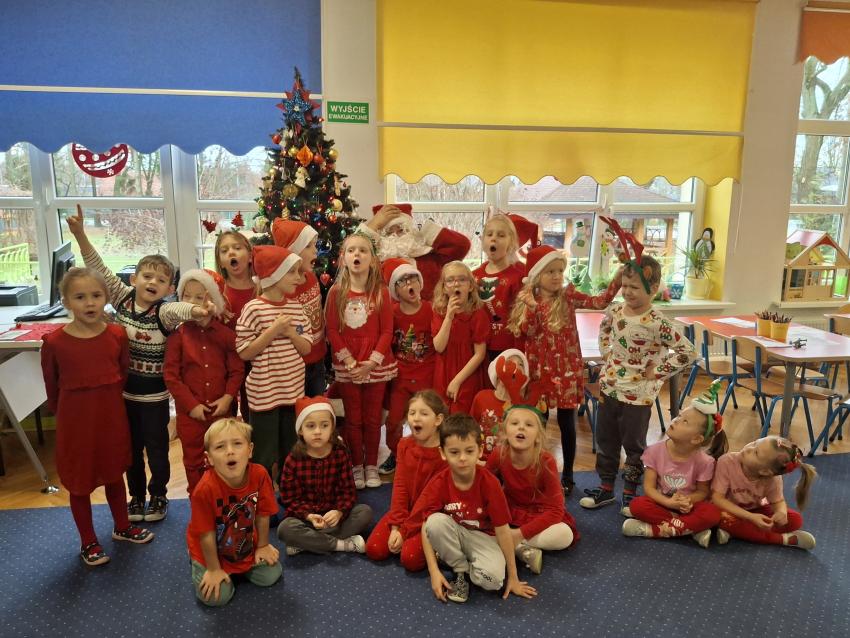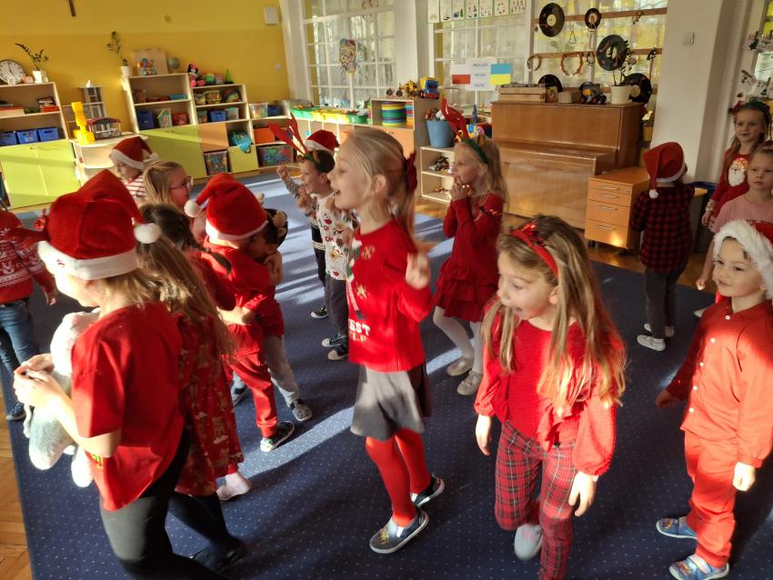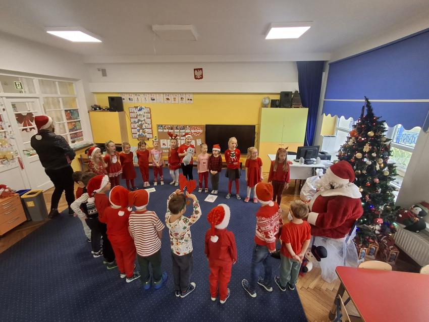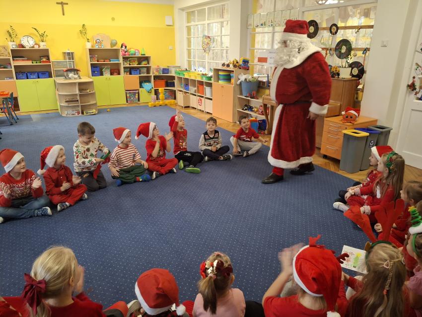 Wreszcie nadszedł ten długo wyczekiwany dzień! Atrakcje rozpoczęliśmy koncertem kolęd i pastorałek w wykonaniu Pracowni Jaszczur i Przyjaciele, a chwilę później nasze przedszkole odwiedził Mikołaj! Wyczekiwaliśmy Go i wypatrywaliśmy z daleka. Wydawało nam się, że za oknem widzieliśmy rogi renifera! Święty Mikołaj obdarował nas prezentami, a w zamian odwdzięczyliśmy się pięknie zaśpiewaną piosenką! Do zobaczenia za rok Mikołaju!