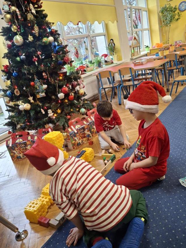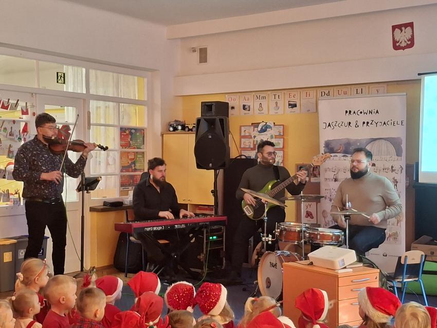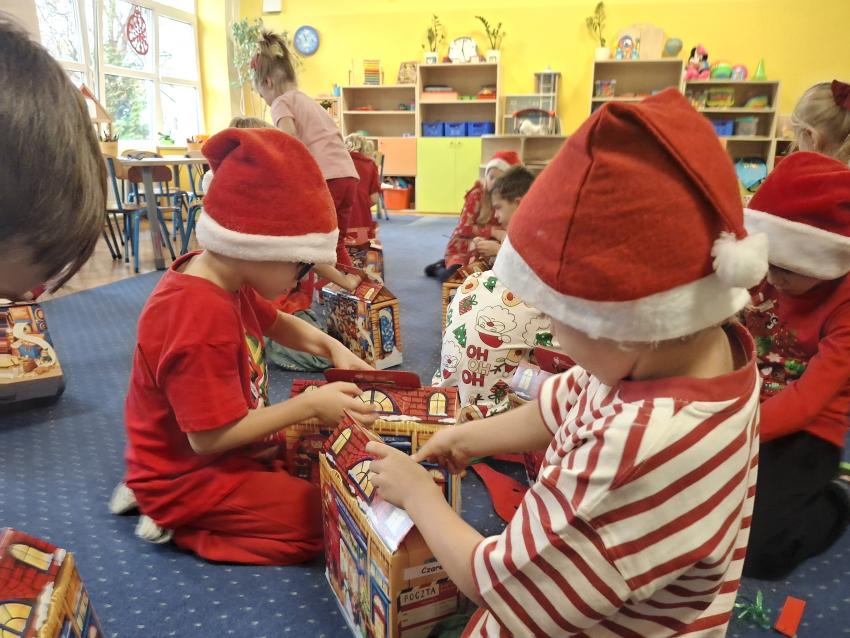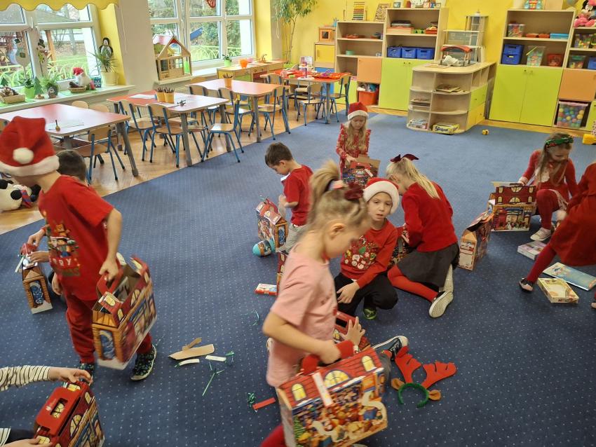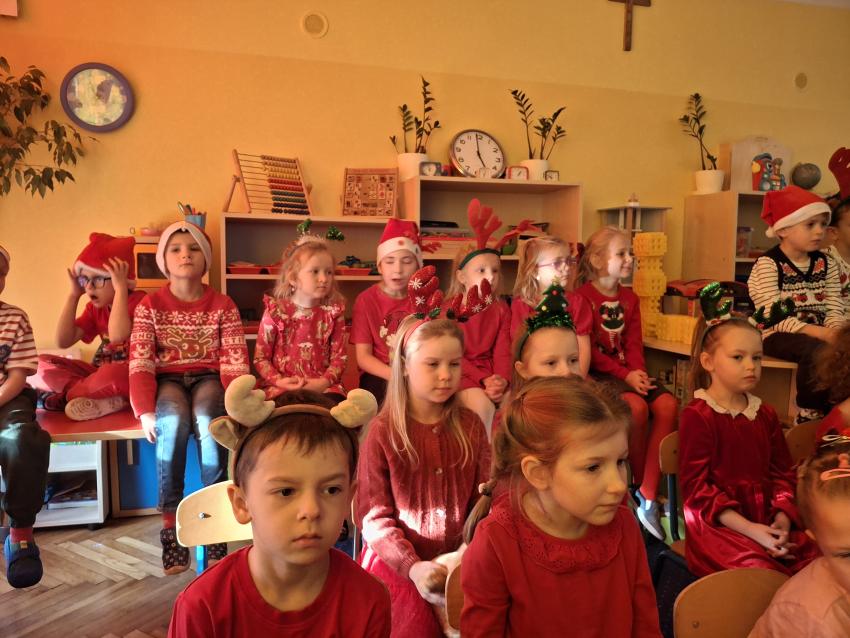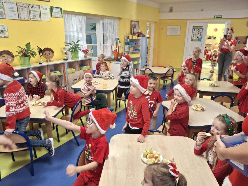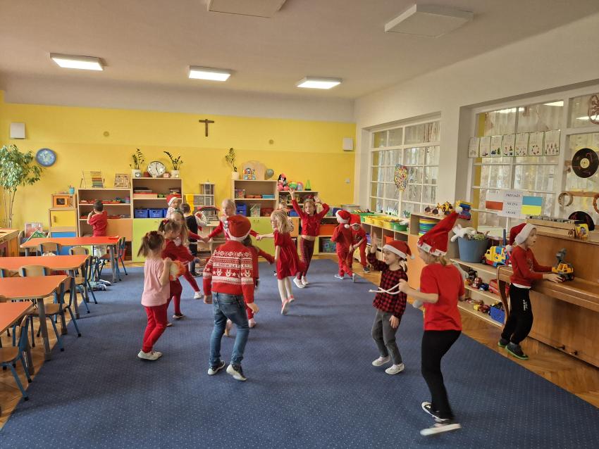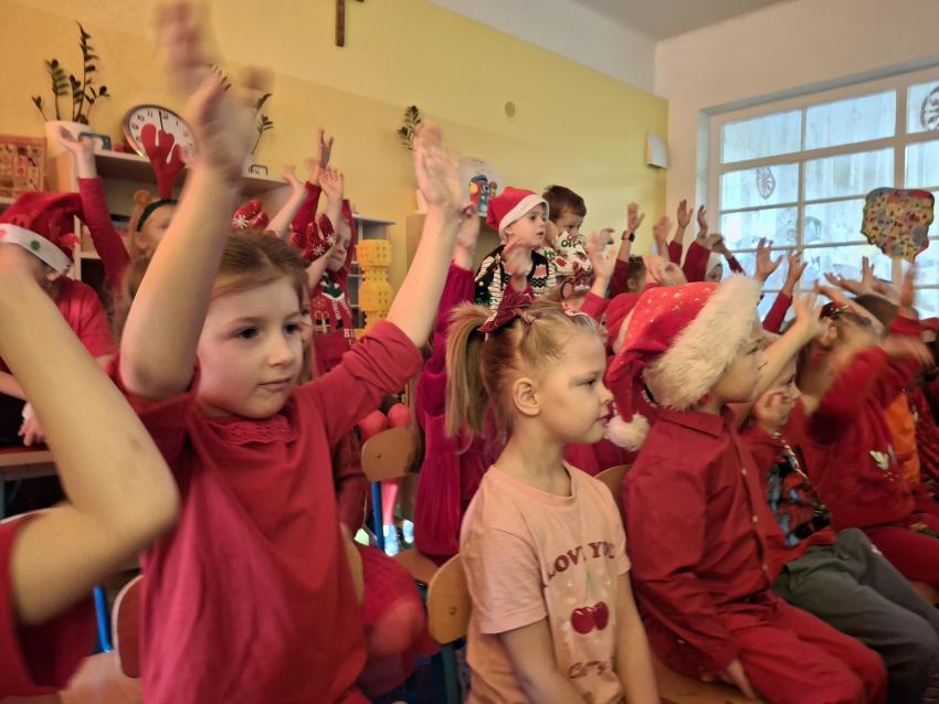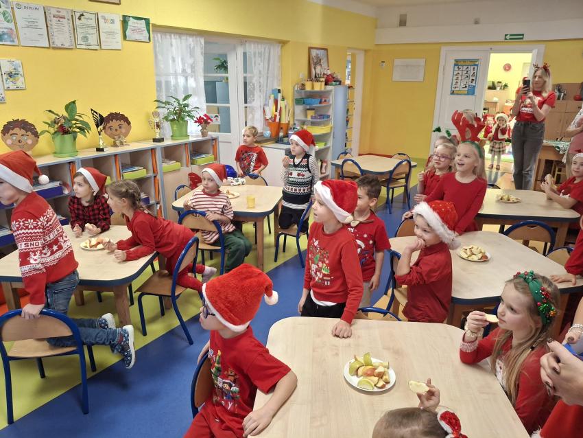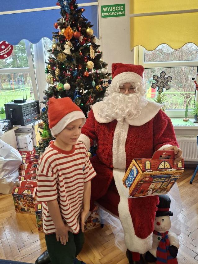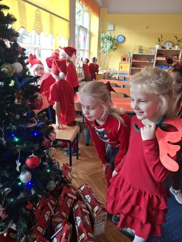 Wreszcie nadszedł ten długo wyczekiwany dzień! Atrakcje rozpoczęliśmy koncertem kolęd i pastorałek w wykonaniu Pracowni Jaszczur i Przyjaciele, a chwilę później nasze przedszkole odwiedził Mikołaj! Wyczekiwaliśmy Go i wypatrywaliśmy z daleka. Wydawało nam się, że za oknem widzieliśmy rogi renifera! Święty Mikołaj obdarował nas prezentami, a w zamian odwdzięczyliśmy się pięknie zaśpiewaną piosenką! Do zobaczenia za rok Mikołaju!