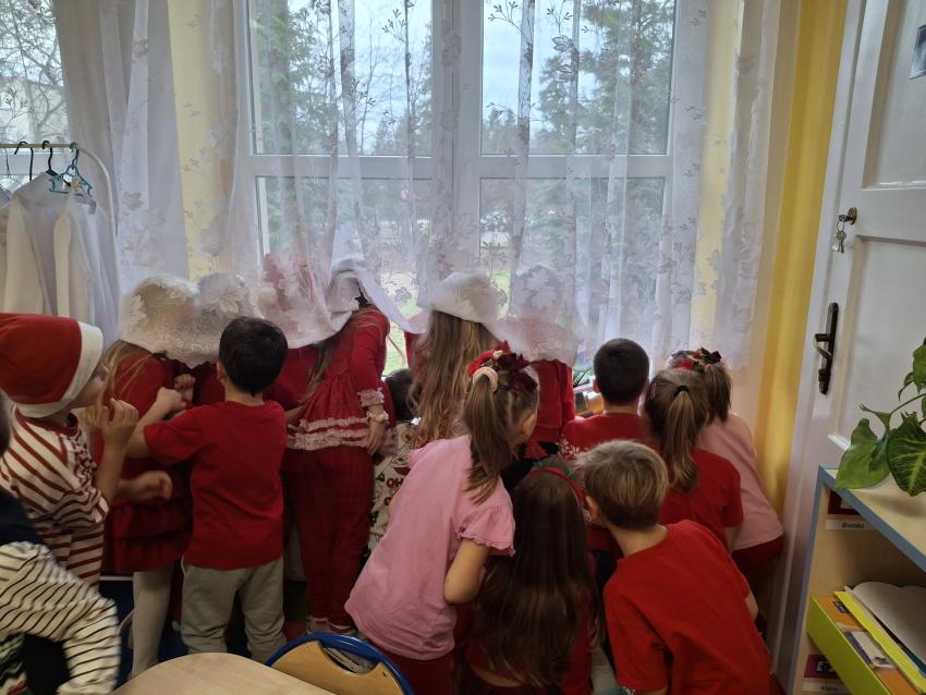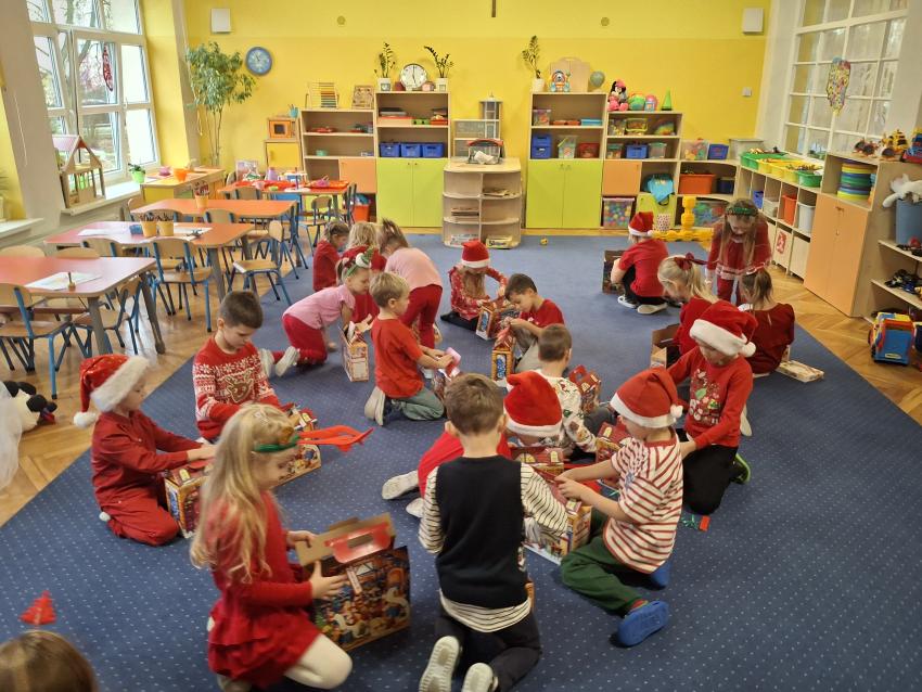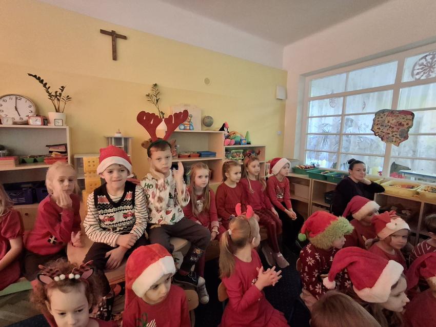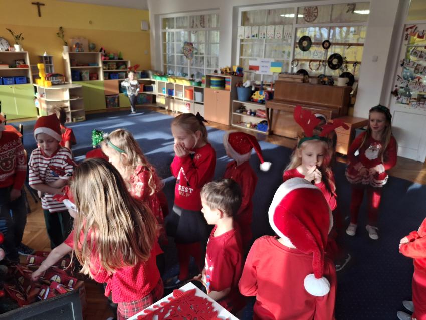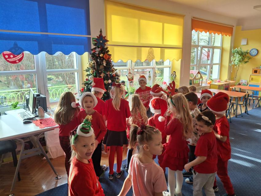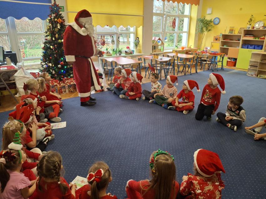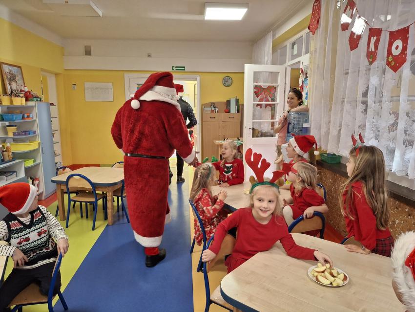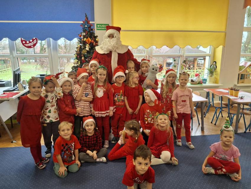 Wreszcie nadszedł ten długo wyczekiwany dzień! Atrakcje rozpoczęliśmy koncertem kolęd i pastorałek w wykonaniu Pracowni Jaszczur i Przyjaciele, a chwilę później nasze przedszkole odwiedził Mikołaj! Wyczekiwaliśmy Go i wypatrywaliśmy z daleka. Wydawało nam się, że za oknem widzieliśmy rogi renifera! Święty Mikołaj obdarował nas prezentami, a w zamian odwdzięczyliśmy się pięknie zaśpiewaną piosenką! Do zobaczenia za rok Mikołaju!