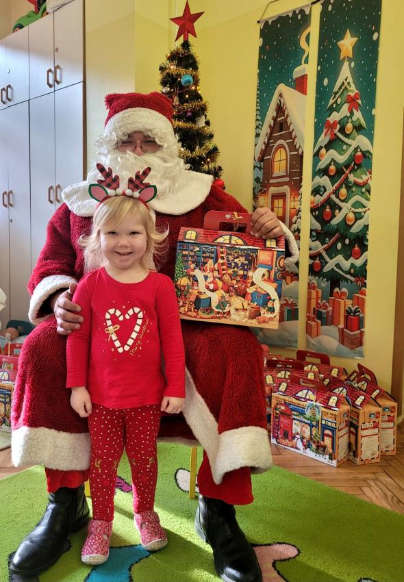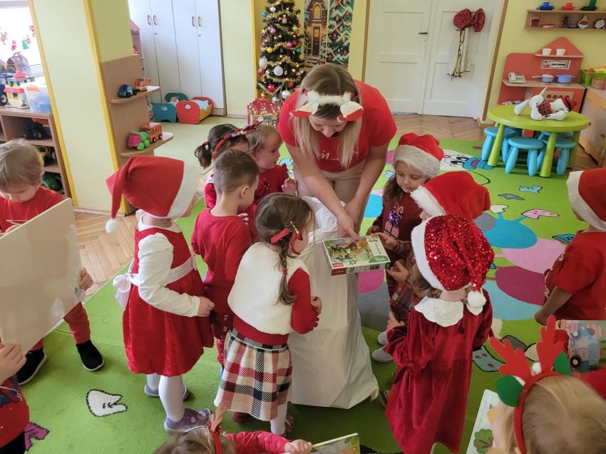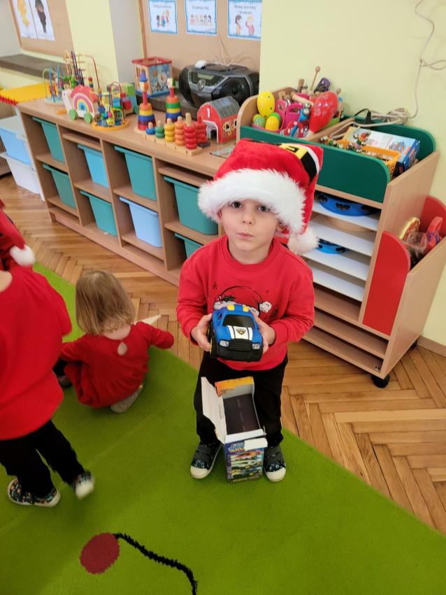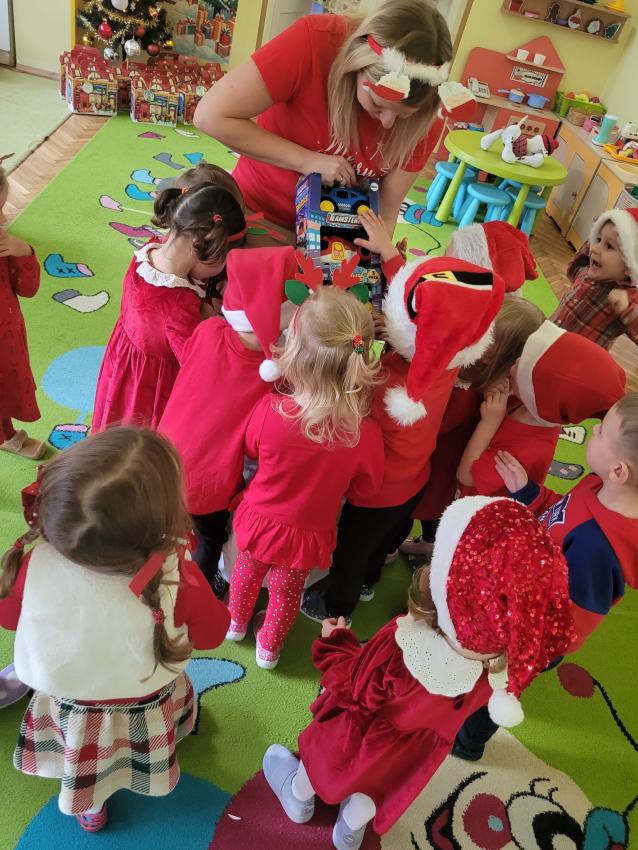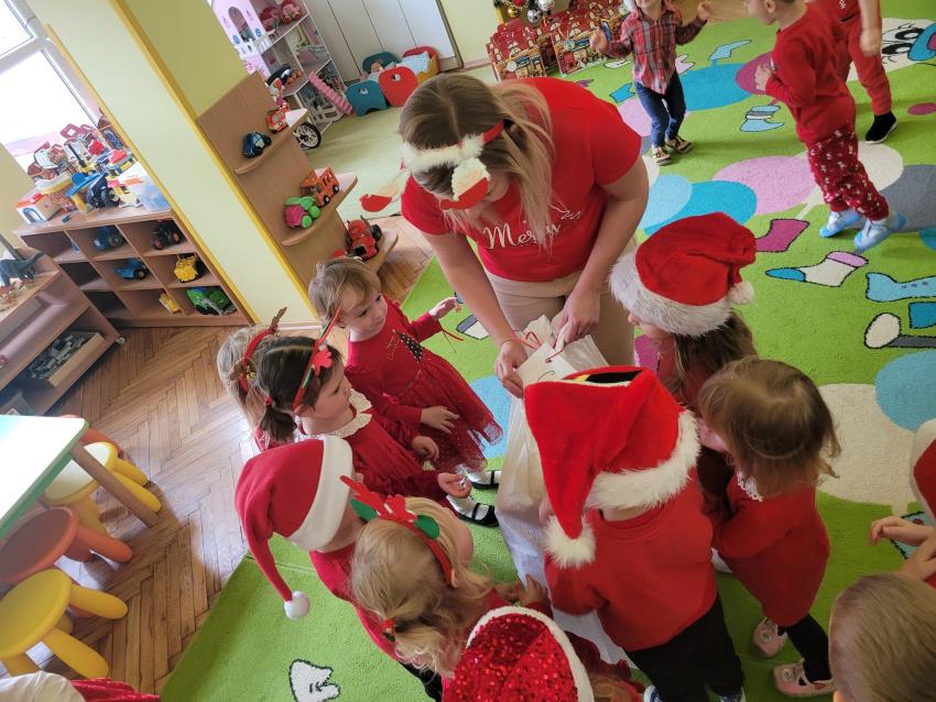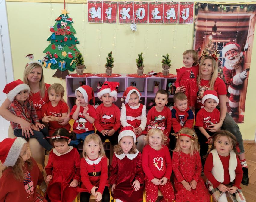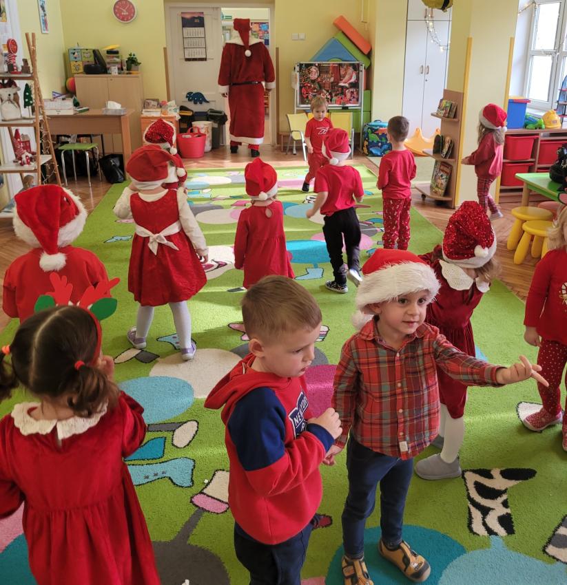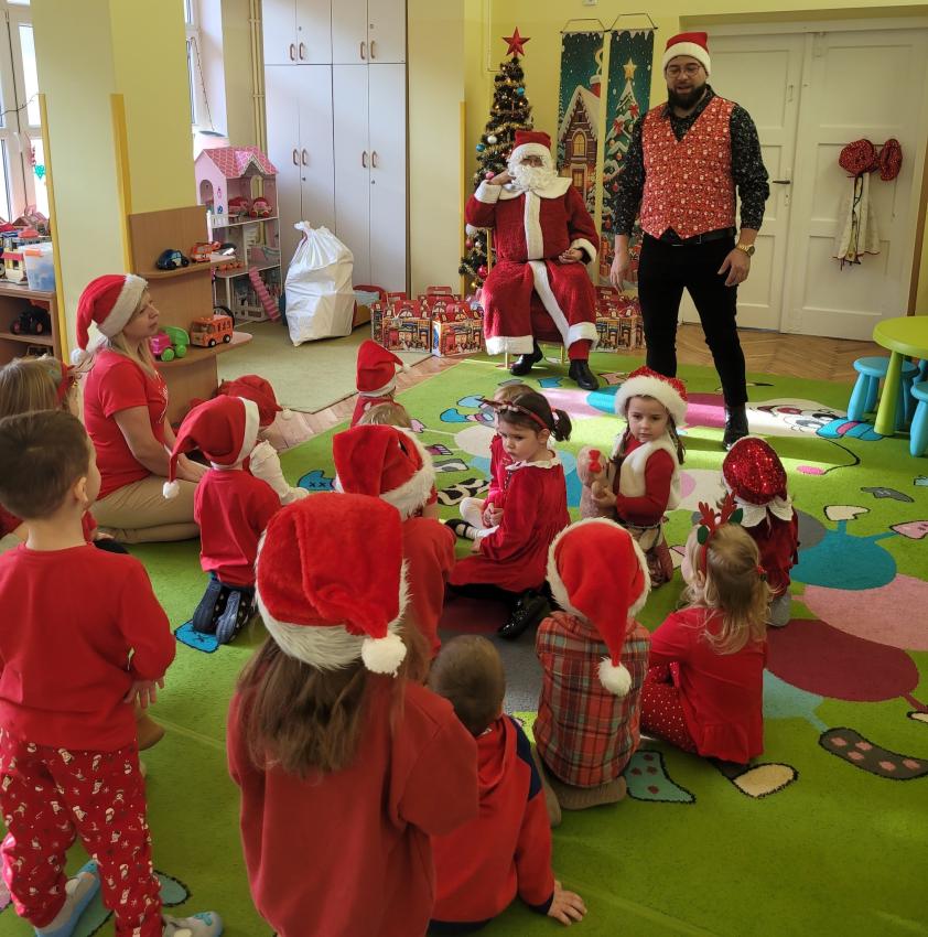 Dziś nasze Pszczółki odwiedził Święty Mikołaj . Dzieci pięknie zaśpiewały dla niego piosenkę , a w nagrodę otrzymały wspaniałe prezenty . Było dużo radości , uśmiechów i świątecznej magii .