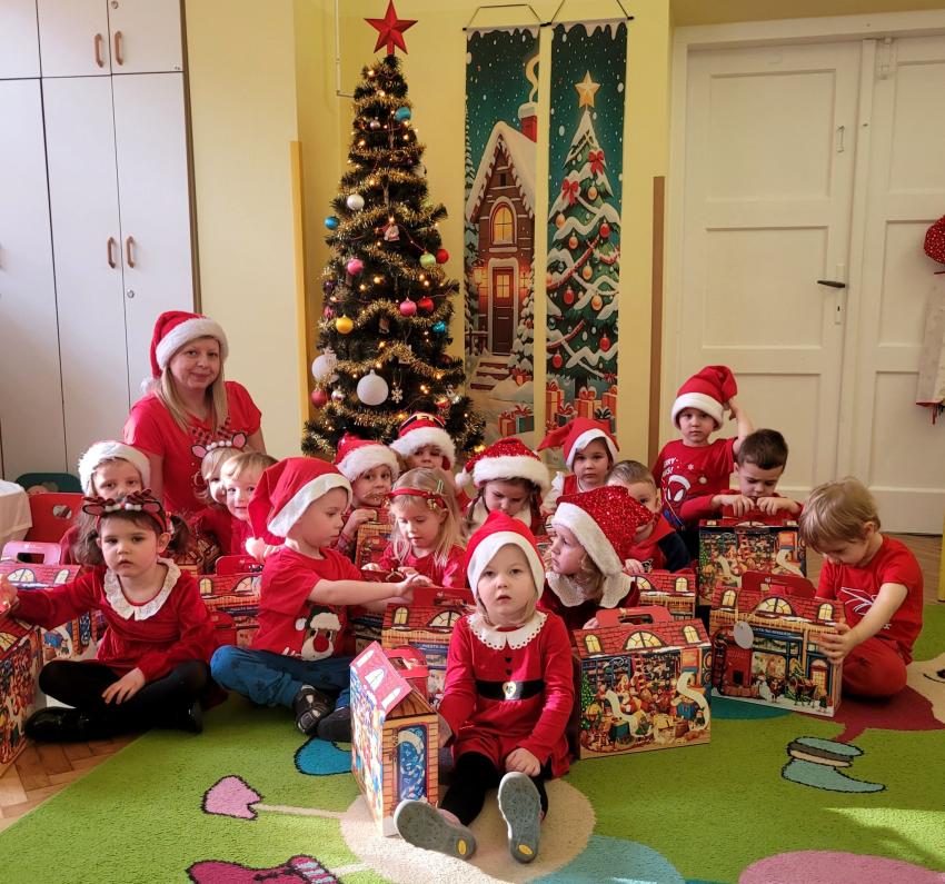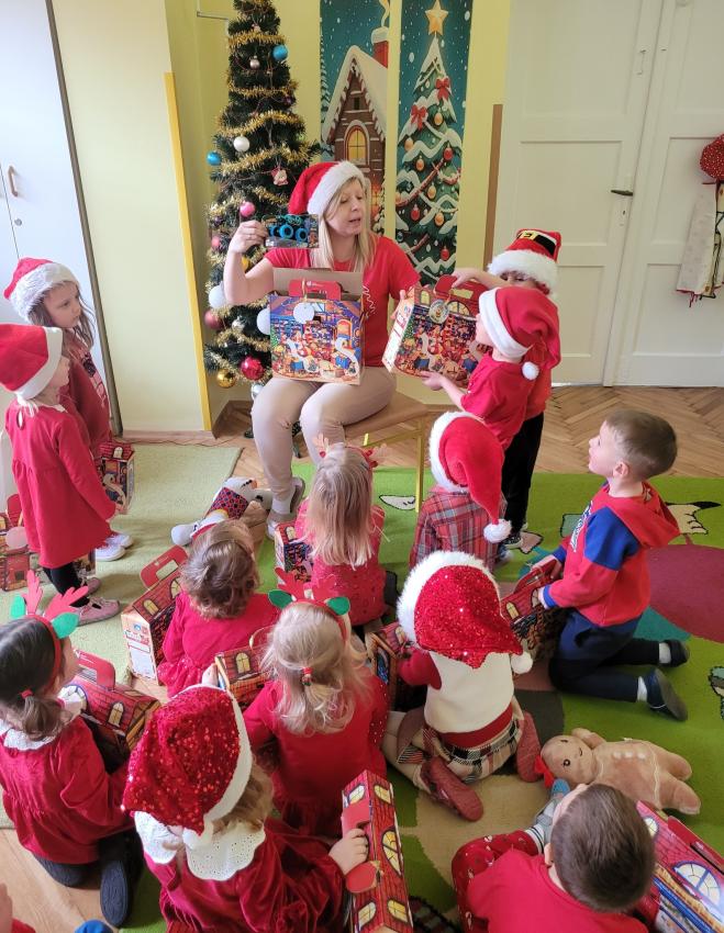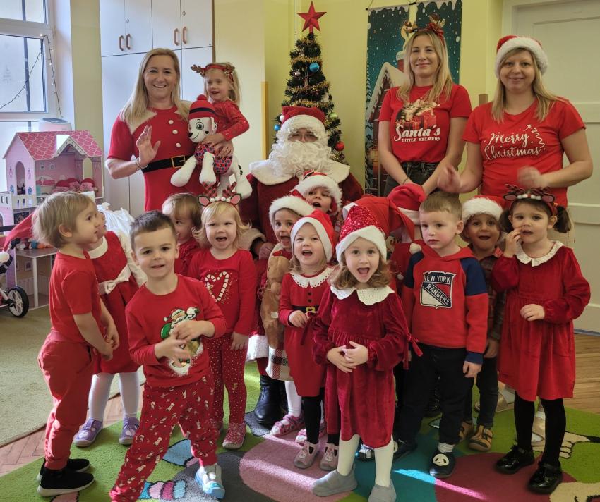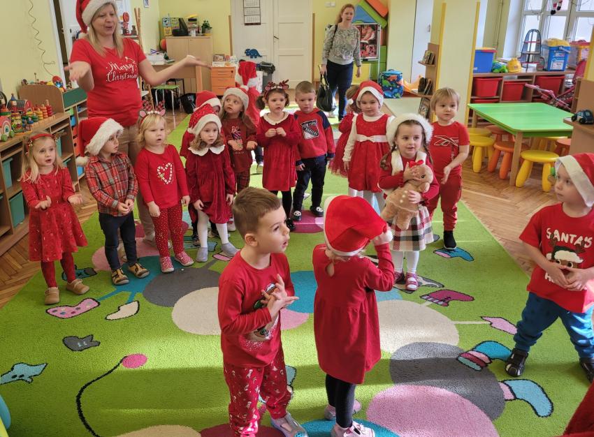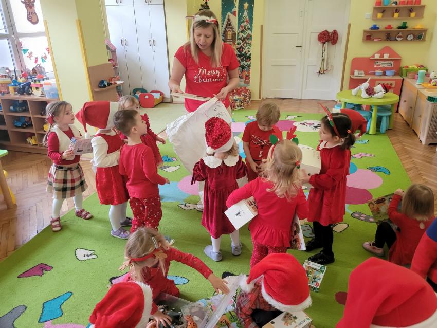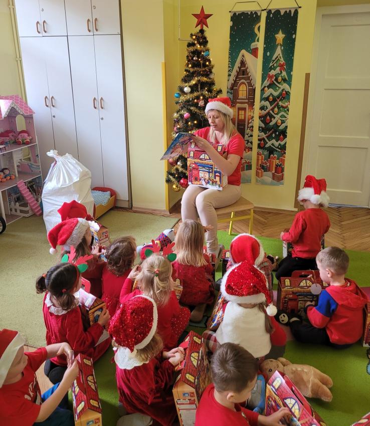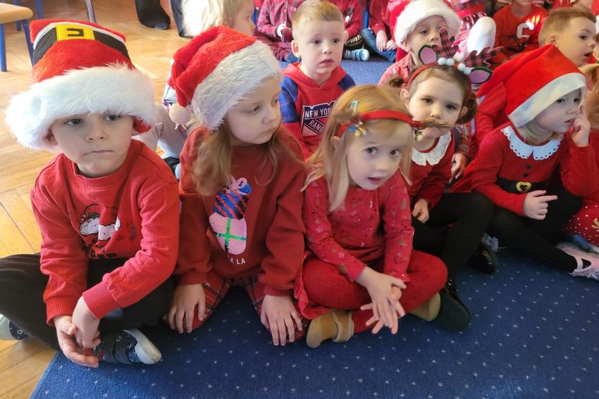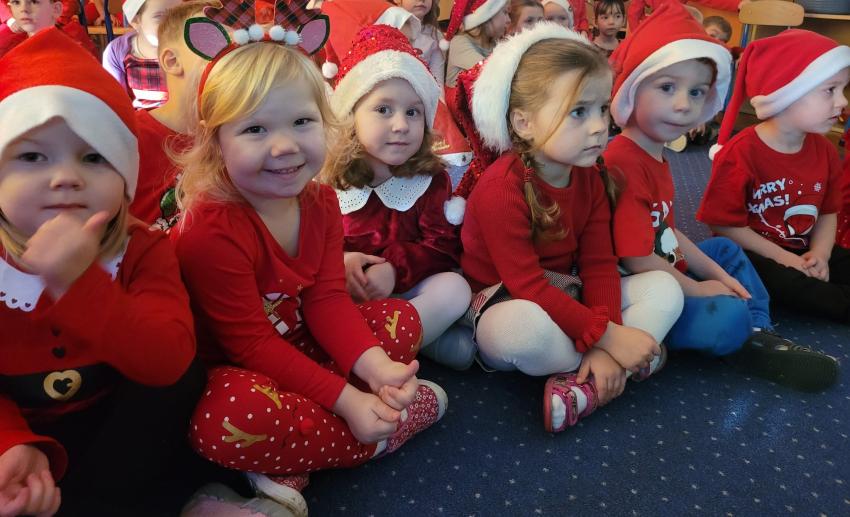 Dziś nasze Pszczółki odwiedził Święty Mikołaj . Dzieci pięknie zaśpiewały dla niego piosenkę , a w nagrodę otrzymały wspaniałe prezenty . Było dużo radości , uśmiechów i świątecznej magii .