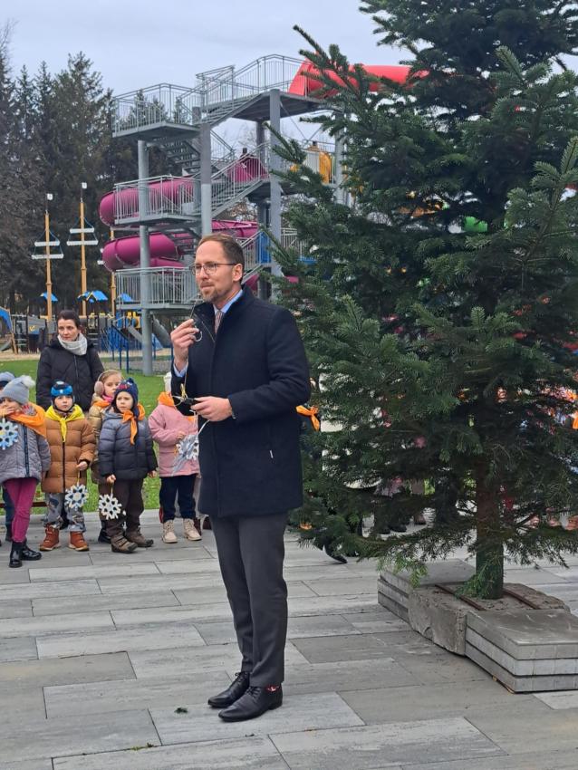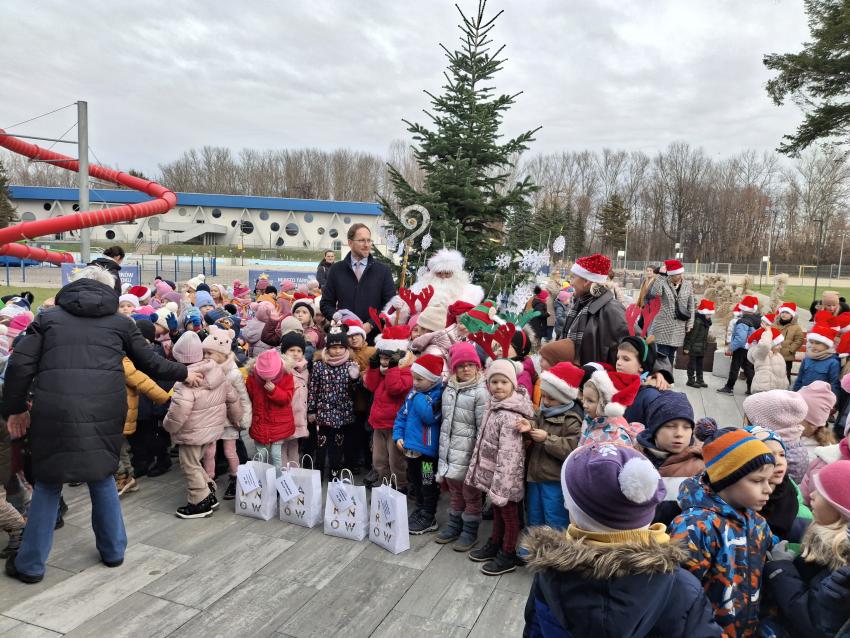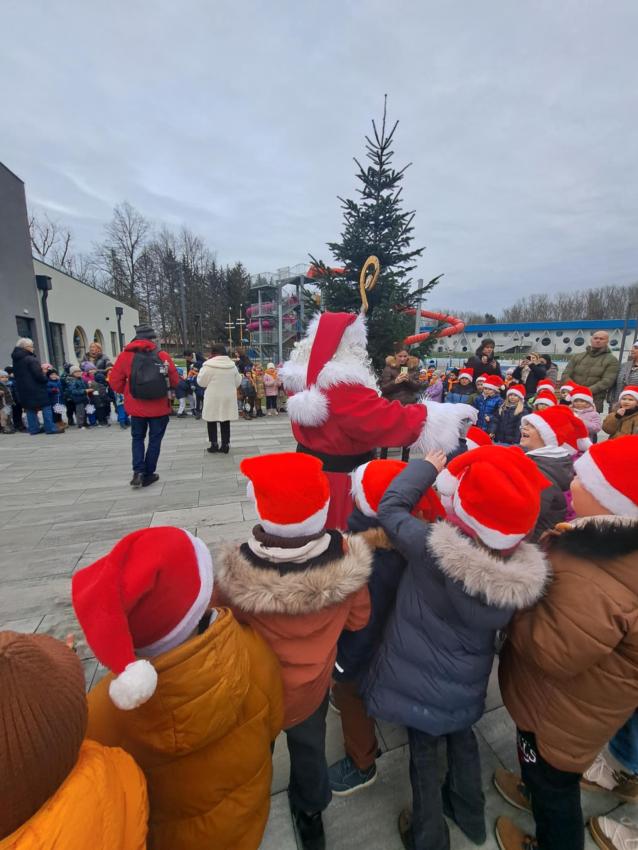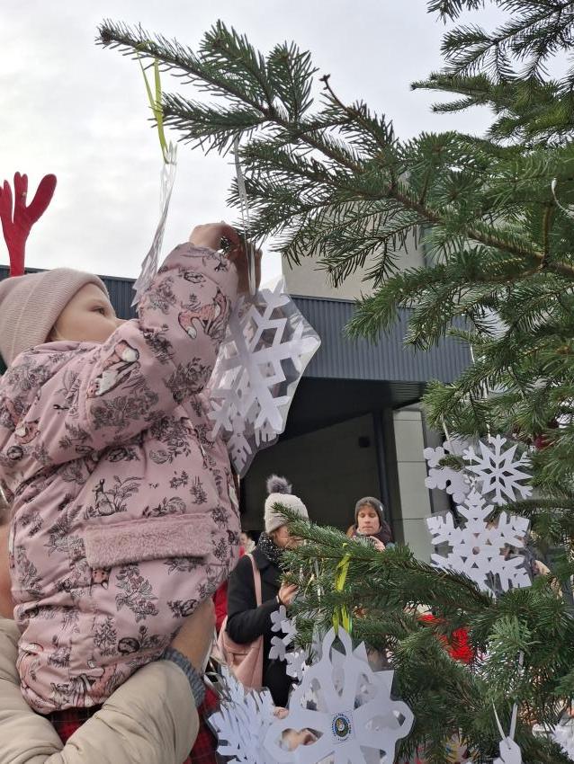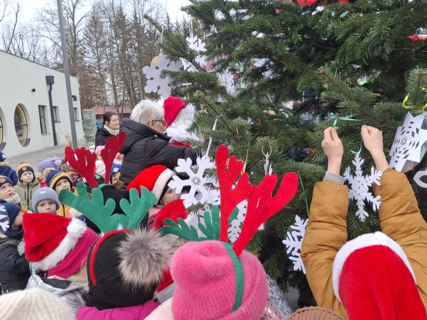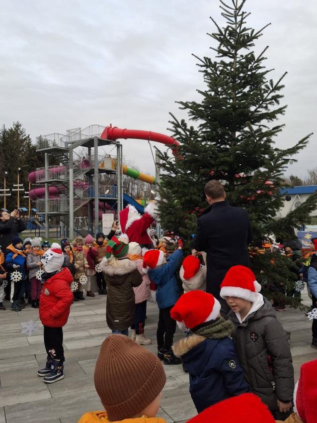 Ubieranie choinki na terenie Parku Wodnego w Mościcach
