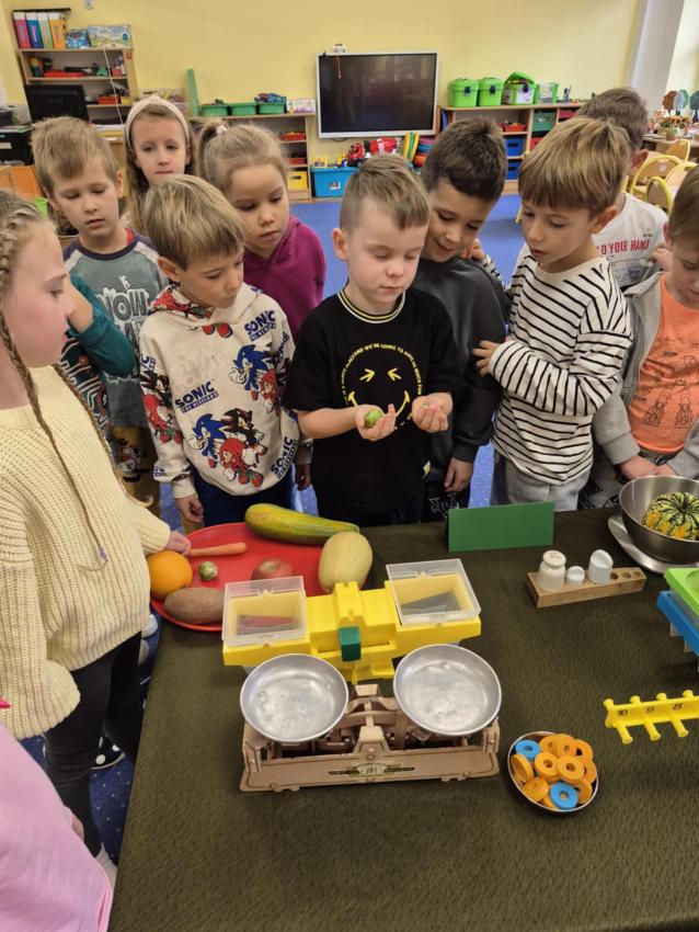 Pajacyki biorą udział w projekcie Mali Wielcy Odkrywcy w związku z tym przeprowadziły pierwsze doświadczenie z kolorowymi liśćmi " W jaki sposób oddychają drzewa" . Dzieci do przygotowanego pojemnika z wodą włożyły listek, przygniotły listek klockiem i postawiły pojemnik w nasłonecznionym miejscu. Po kilku minutach pojawiły się efekty ( bąbelki na liściu). Doświadczenia to świetna zabawa, która pozwala obserwować, wyciągać wnioski, analizować. Poznały również trudne słowa fotosynteza oraz chlorofil, a także dowiedziały się dlaczego liście zmieniają kolor jesienią. Dzieci wzięły udział w spacerze badawczym ,,polowanie na drzewa'', podczas którego poszukiwały drzew oraz obserwowały i porównywały kolory liści różnych drzew.