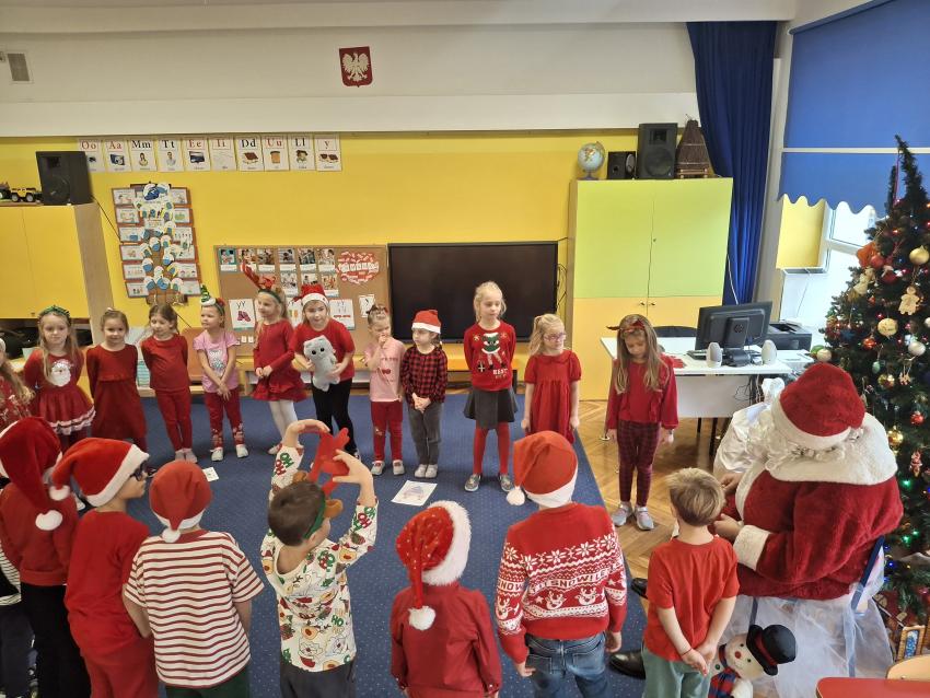 Wreszcie nadszedł ten długo wyczekiwany dzień! Atrakcje rozpoczęliśmy koncertem kolęd i pastorałek w wykonaniu Pracowni Jaszczur i Przyjaciele, a chwilę później nasze przedszkole odwiedził Mikołaj! Wyczekiwaliśmy Go i wypatrywaliśmy z daleka. Wydawało nam się, że za oknem widzieliśmy rogi renifera! Święty Mikołaj obdarował nas prezentami, a w zamian odwdzięczyliśmy się pięknie zaśpiewaną piosenką! Do zobaczenia za rok Mikołaju!