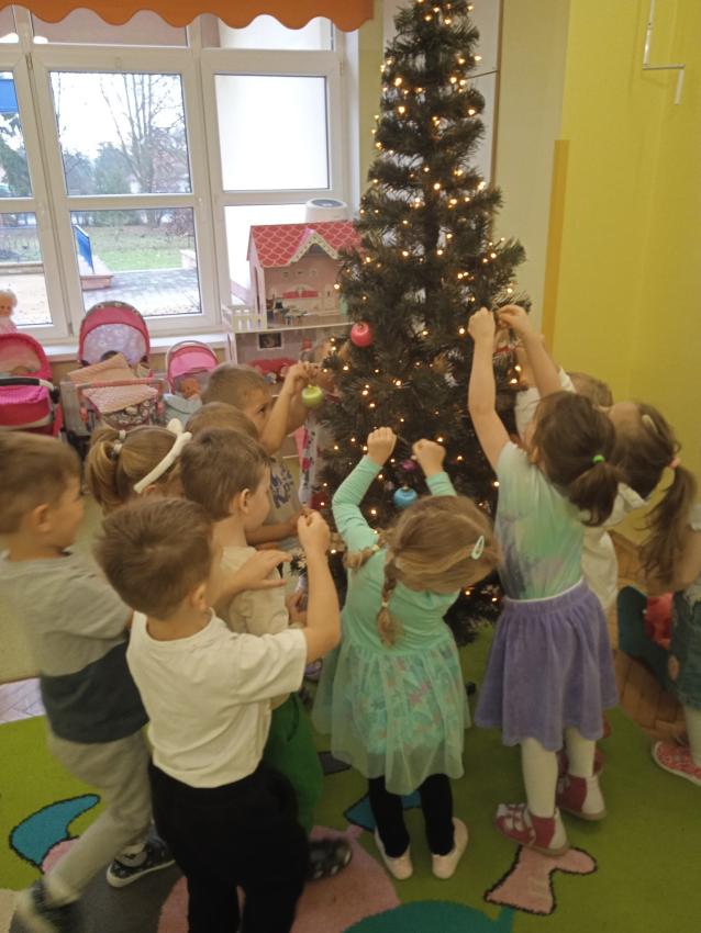 Dziś nasze Pszczółki odwiedził Święty Mikołaj . Dzieci pięknie zaśpiewały dla niego piosenkę , a w nagrodę otrzymały wspaniałe prezenty . Było dużo radości , uśmiechów i świątecznej magii .