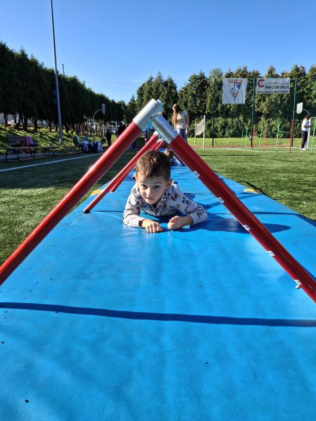 To był radosny, pełen uśmiechu i aktywności dzień. Uczestniczyliśmy w zajęciach sportowych obejmujących tor pełen wyzwań lekkoatletycznych oraz rozgrywkę w piłkę nożną. Bardzo dziękujemy za zaproszenie!