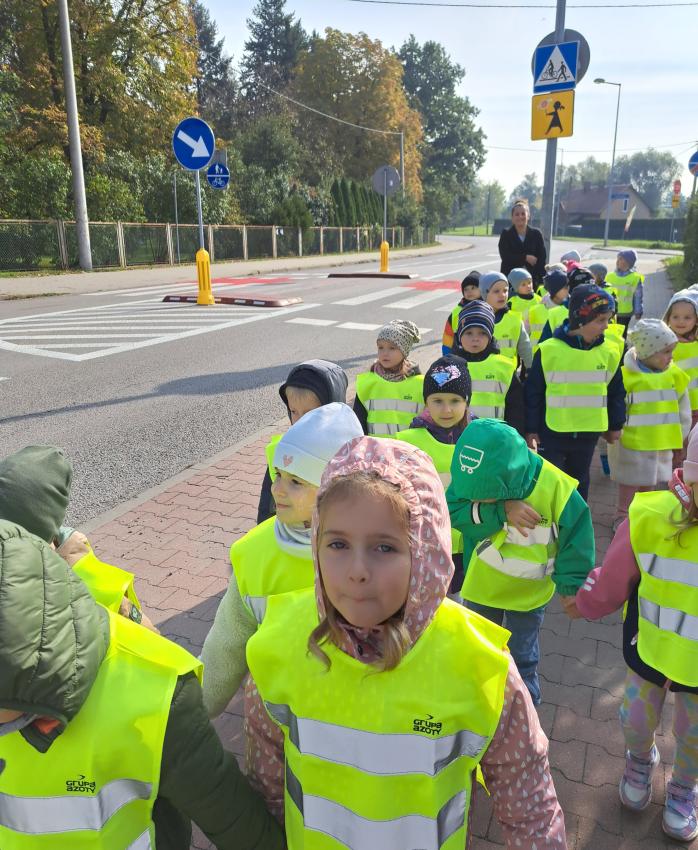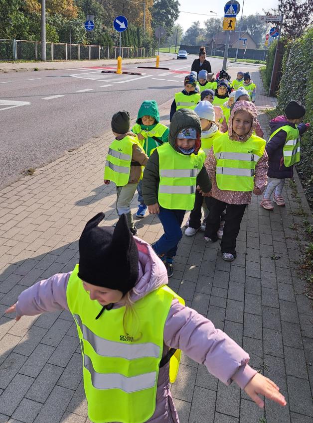 Bezpieczeństwo dziecka na drodze to bardzo ważna sprawa, której trzeba uczyć wszystkie dzieci, dlatego również w naszej grupie nie mogło zabraknąć takich zajęć. Dzieci zapoznały się z zasadami bezpiecznego i kulturalnego uczestnictwa w ruchu drogowym. W sali przedszkolaki zapoznały się z podstawowymi znakami drogowymi, oraz same mogły pokazać jak bezpiecznie przejść na drugą stronę jezdni. Wiadomo jednak, że każdą teorię należy zastosować w praktyce i tak też było z naszymi zuchami - przechodziły przez przejścia dla pieszych oraz sprawdzały swoją wiedzę dotyczącą znaków drogowych.