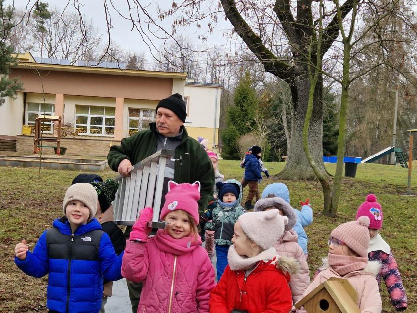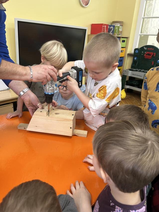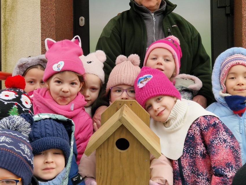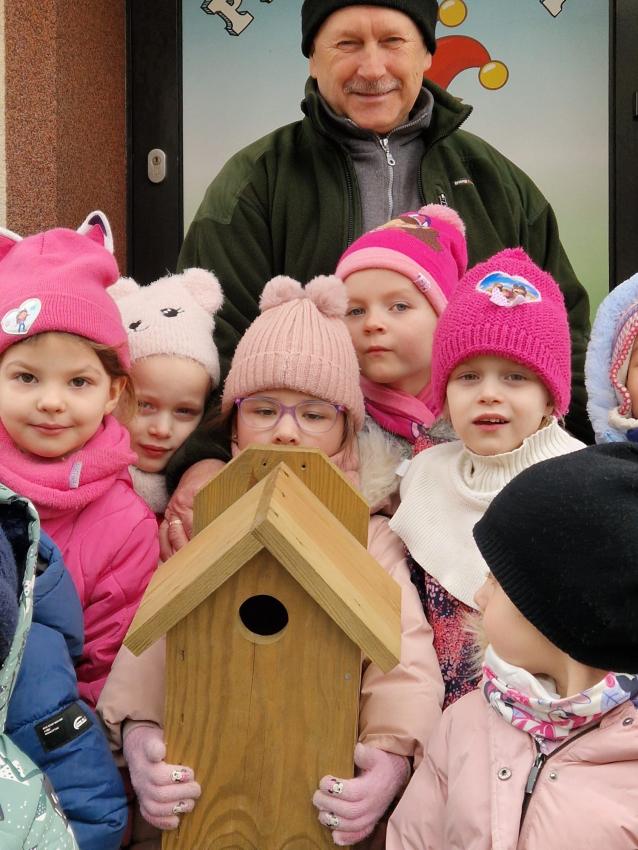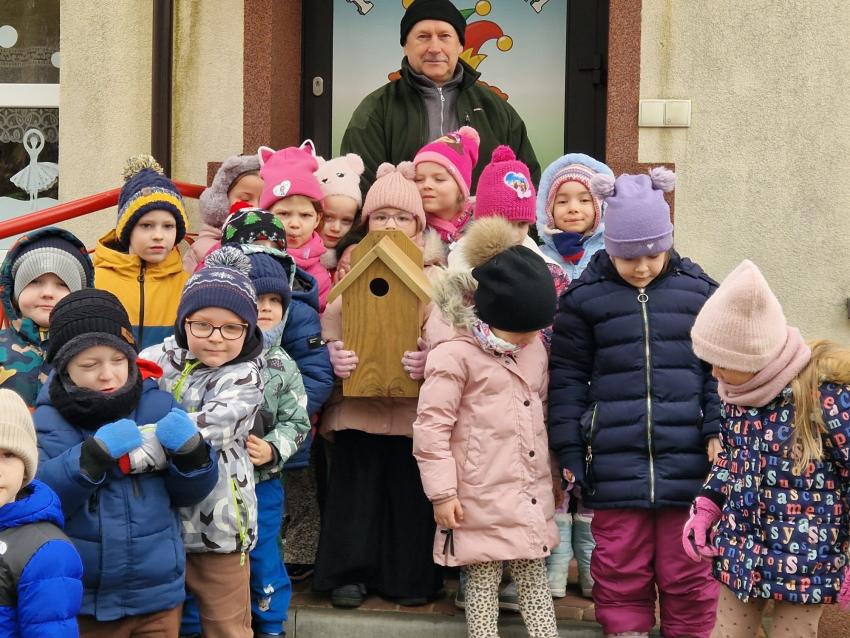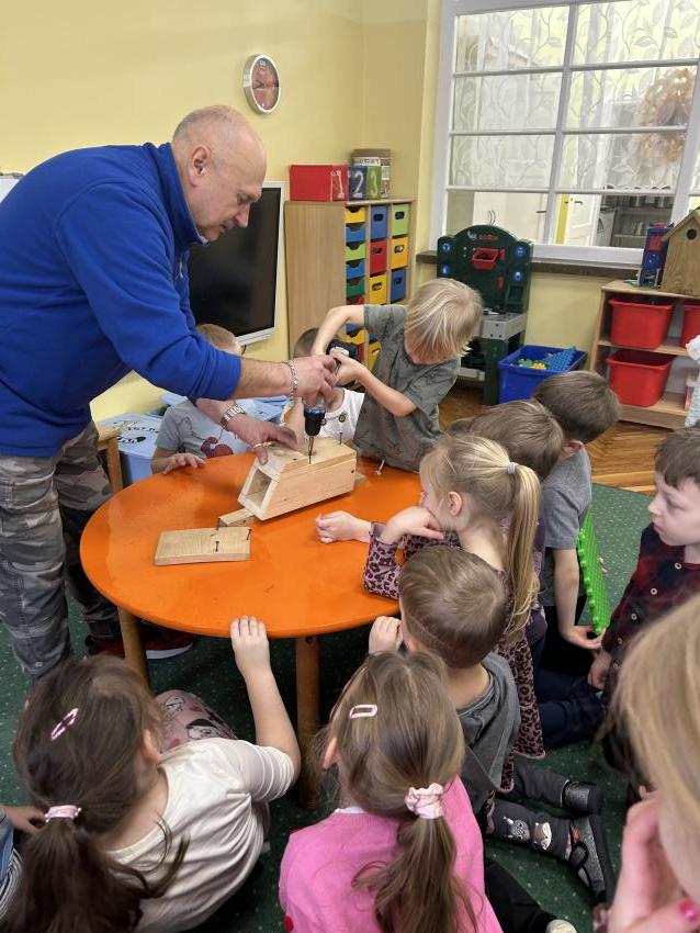 Przedszkolaki z grupy ,Pajacyki, wzięły udział w konkursie ,Zaprośmy ptaki do Tarnowa,, organizowanym przez Urząd Miasta Tarnów. Zadaniem uczestników było wykonanie budki lęgowej dla ptaków. Dzieci wraz z panem Witkiem z ogromnym zaangażowaniem przygotowały swoją budkę, wykazując się kreatywnością i troską o przyrodę. Następnie wspólnie uczestniczyły w jej zawieszeniu w ogrodzie przedszkolnym. To była wspaniała lekcja ekologii i miłości do zwierząt.