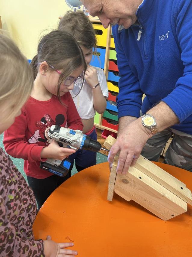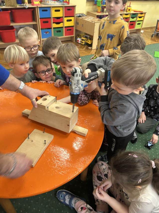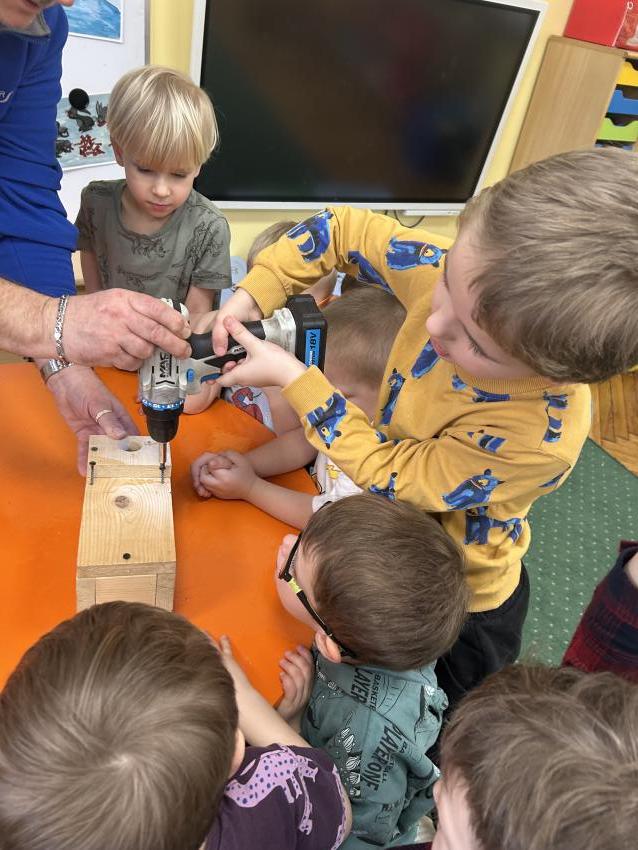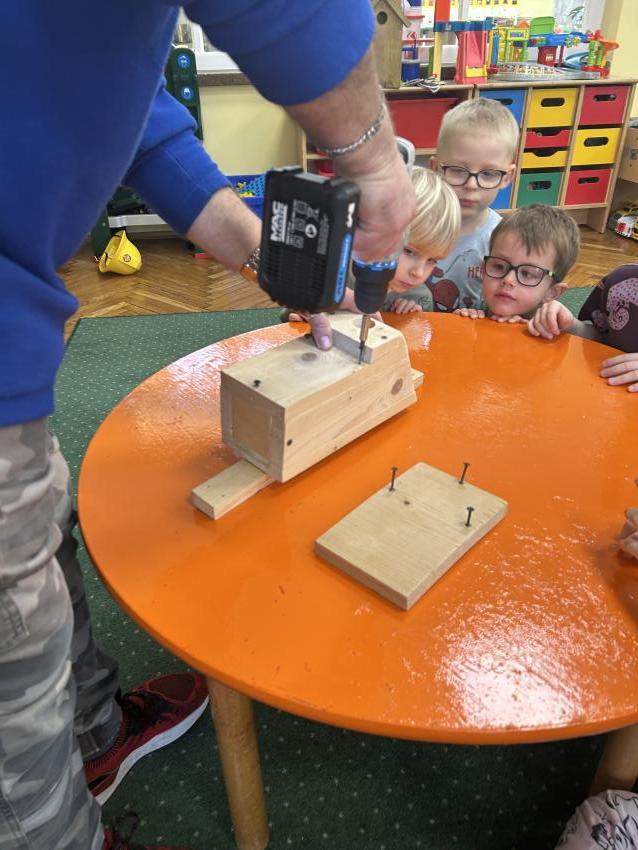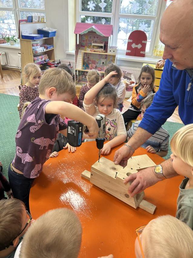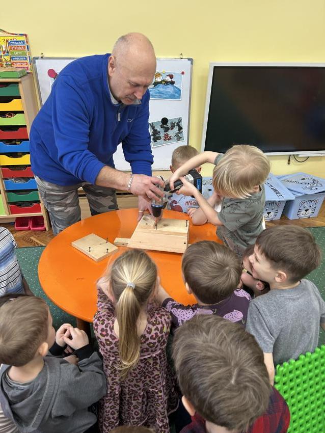 Przedszkolaki z grupy ,Pajacyki, wzięły udział w konkursie ,Zaprośmy ptaki do Tarnowa,, organizowanym przez Urząd Miasta Tarnów. Zadaniem uczestników było wykonanie budki lęgowej dla ptaków. Dzieci wraz z panem Witkiem z ogromnym zaangażowaniem przygotowały swoją budkę, wykazując się kreatywnością i troską o przyrodę. Następnie wspólnie uczestniczyły w jej zawieszeniu w ogrodzie przedszkolnym. To była wspaniała lekcja ekologii i miłości do zwierząt.