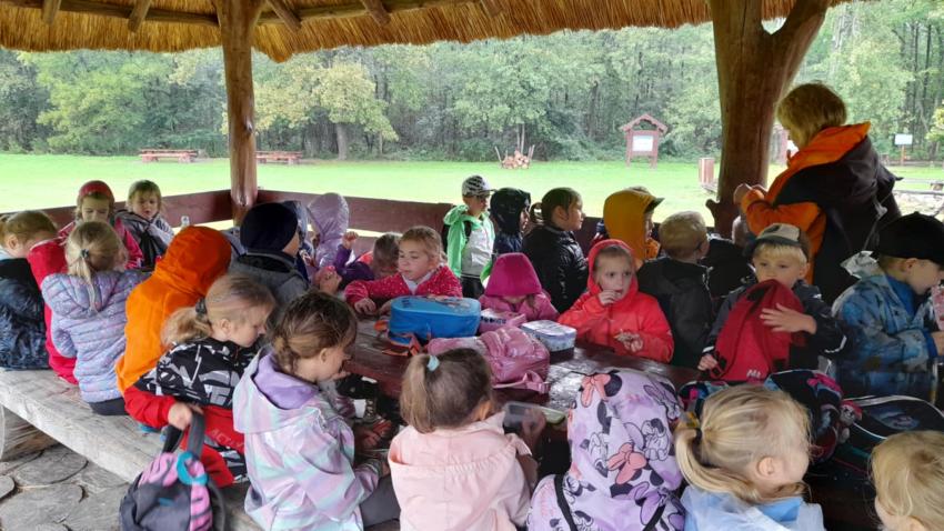 Mimo deszczu i niesprzyjającej pogody udało nam się wybrać do Wierzchosławic, aby w towarzystwie leśnika, Pana Karola Blicharza, przemierzyć ścieżkę edukacyjną i dowiedzieć się jakie zwierzęta i rośliny można napotkać spacerując po lesie. Rozmawialiśmy także o roli drzew i konieczności ochrony przyrody. Przejście całej ścieżki zajęło nam 1,5 godziny, a po tak intensywnym spacerze przyszedł czas na długo wyczekiwany piknik pod wiatą na polanie! Uśmiechnięci, zadowoleni i dotlenieni wróciliśmy bezpiecznie do przedszkola, gdzie zorganizowaliśmy sobie kolejny piknik!