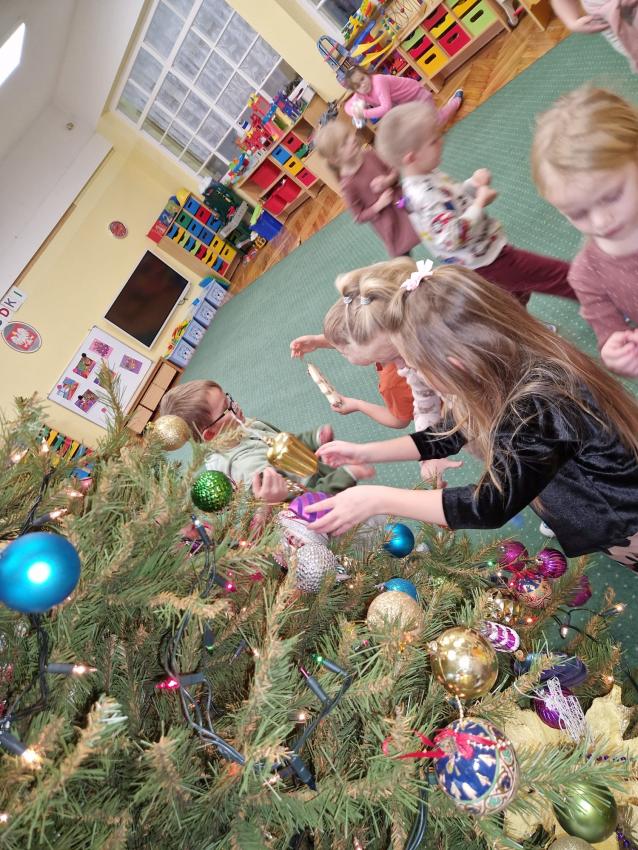 Przedszkolaki z radością biegają po śniegu, lepią bałwana i rzucają się śnieżkami, tworząc wesołą zimową zabawę. Z entuzjazmem robią aniołki na śniegu i z dumą prezentują swoje zimowe dzieła ? śnieżne kule, bałwanki i małe budowle, ciesząc się każdą chwilą spędzoną na świeżym powietrzu.