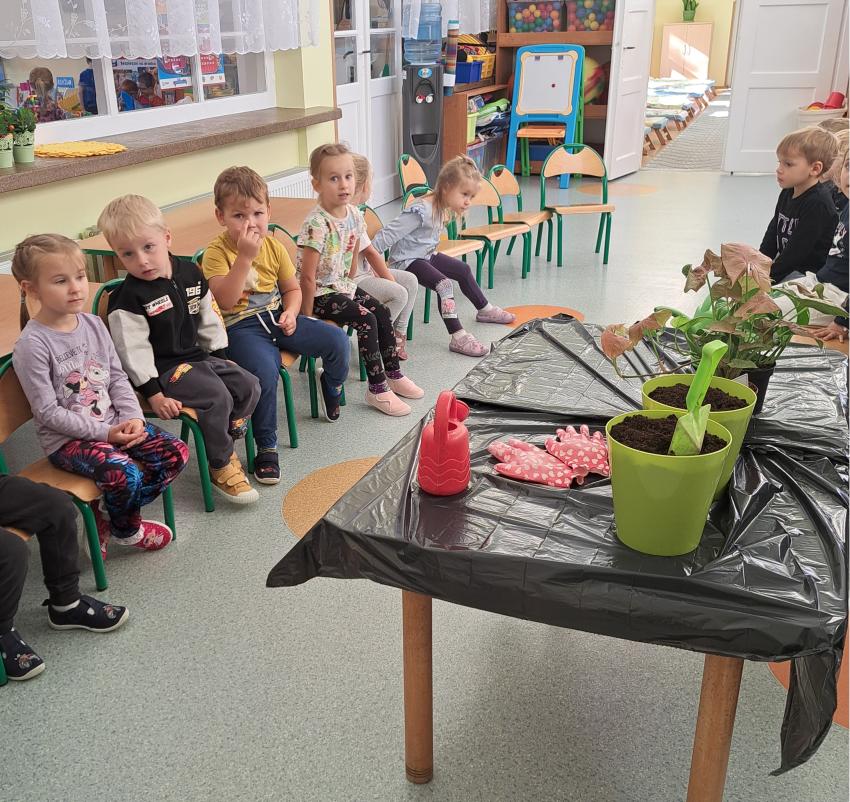 Świat dookoła robi się coraz bardziej zielony - w końcu nadeszła wiosna. Pracowite Pszczołki również chciały, aby ich sala zazieleniła się, więc postanowiły założyć wiosenny kącik. Dzieci samodzielnie napełniały doniczki ziemią, po czym przystąpiły do sadzenia wiosennych kwiatów m.in. tulipanów, hiacyntów, bratków oraz posadziły cebulki na szczypiorek, zasiały koperek i pietruszkę. Dzieci wysłuchały także kolejnego opowiadania o Kici Koci pt. Wiosna.